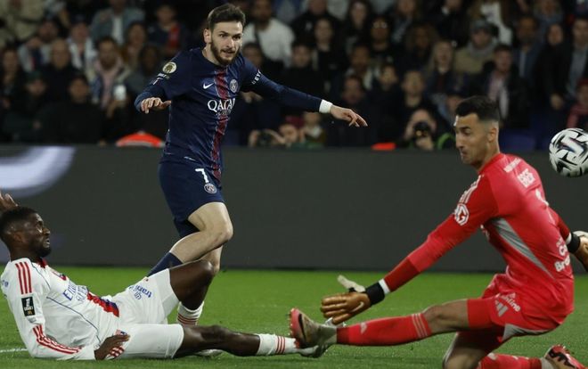 下半场易边再战。第52分钟,莫雷拉尝试一脚远射,门将飞身把球扑了出去。第63分钟,克瓦拉茨赫利亚的小角度射门被挡了出去。第75分钟,登贝莱远射击中门框,非常无奈。补时阶段,巴黎圣日耳曼终于进球了。克瓦拉茨赫利亚轰出一脚世界波。但是,也无济于事,时间所剩无几,巴黎圣日耳曼没能再进一球。最终,巴黎圣日耳曼1-2输给了里昂,爆出了大冷门。